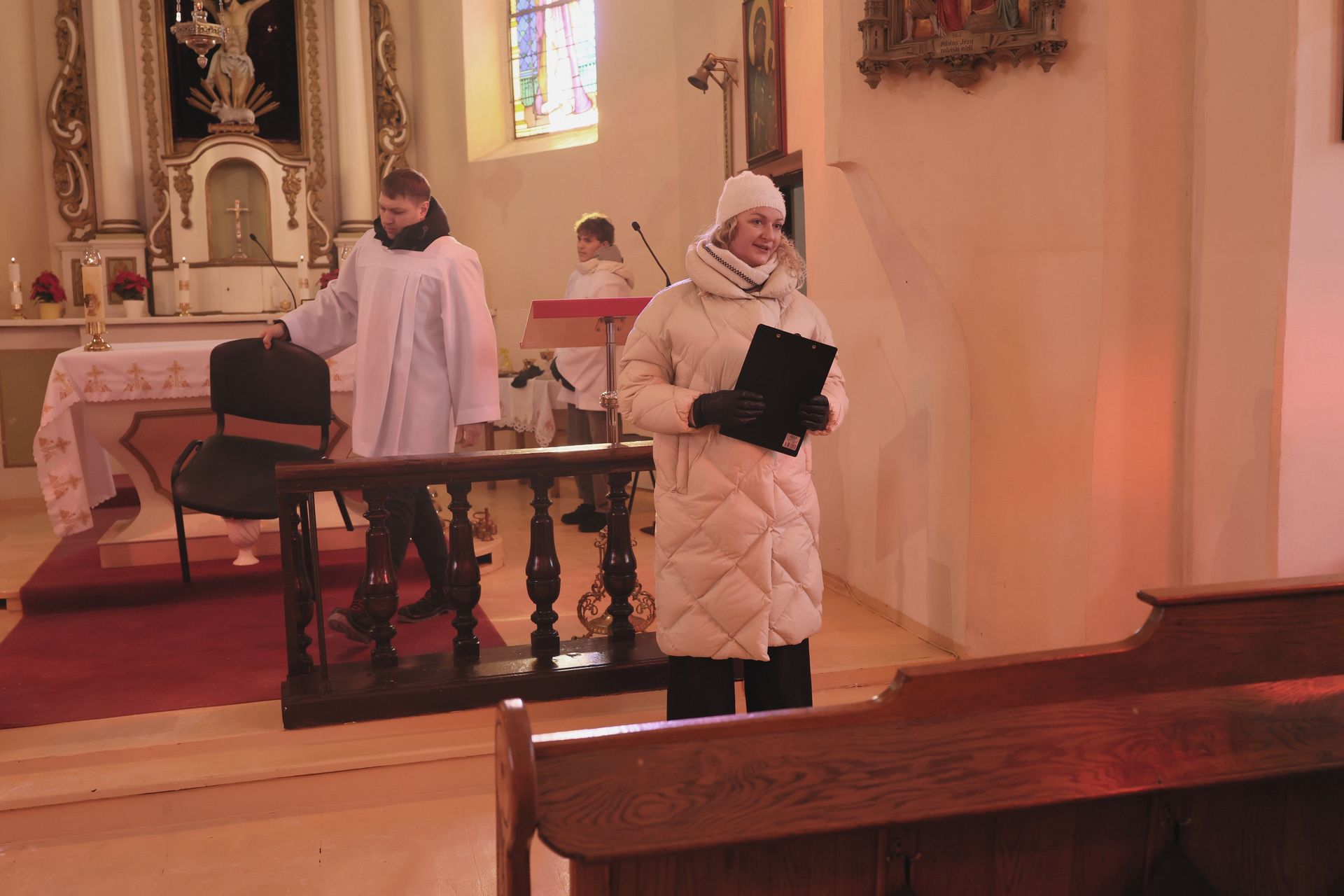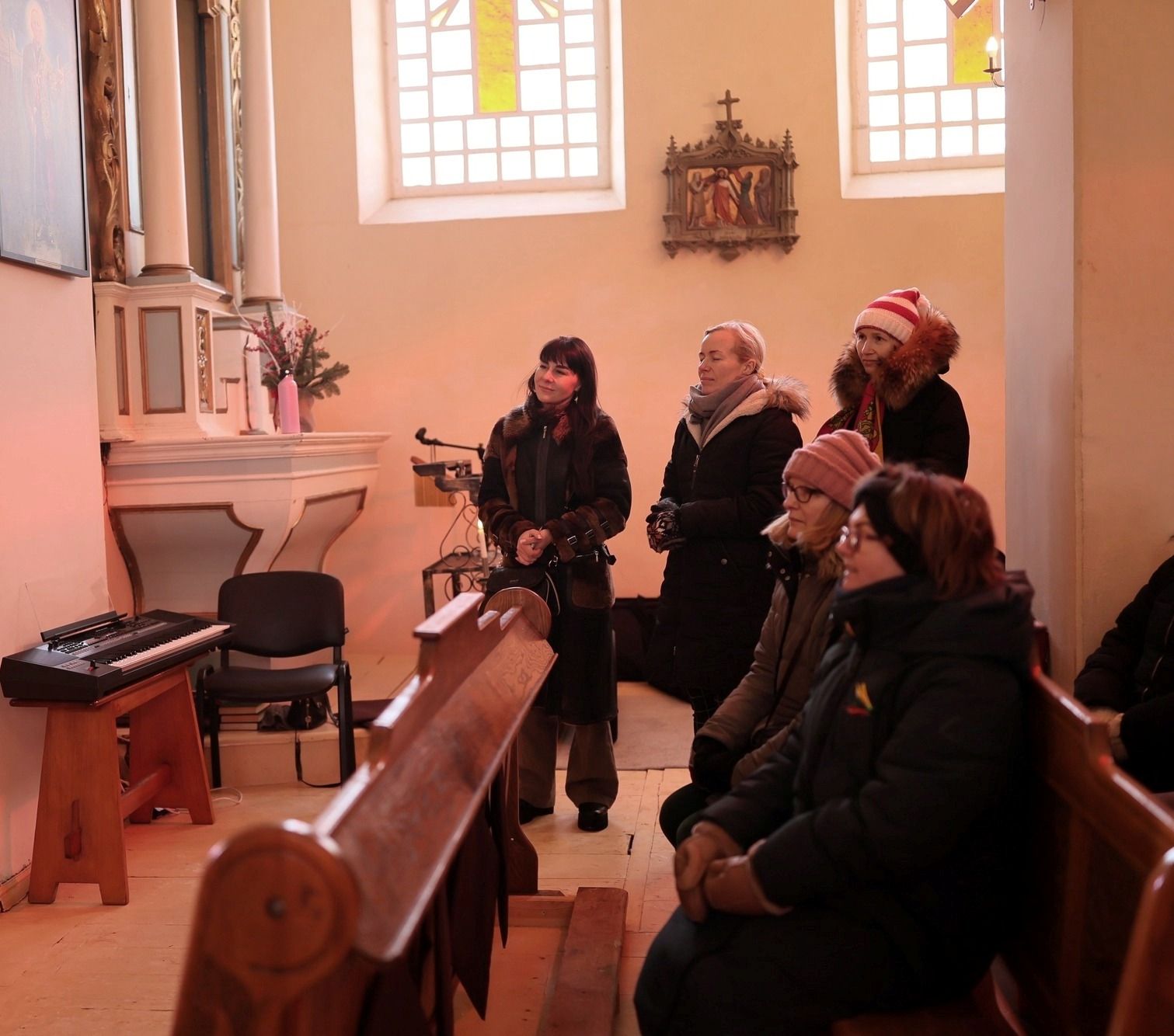 Po pamaldų visi kartu giedojome „Tautišką giesmę”. Valstybės atkūrimo dienos proga žmones pasveikino Domeikavos ir Lapių seniūnijų seniūnės, klebonas padėkojo parapijiečiams už bendrą maldą ypač šaltą žiemos rytą.